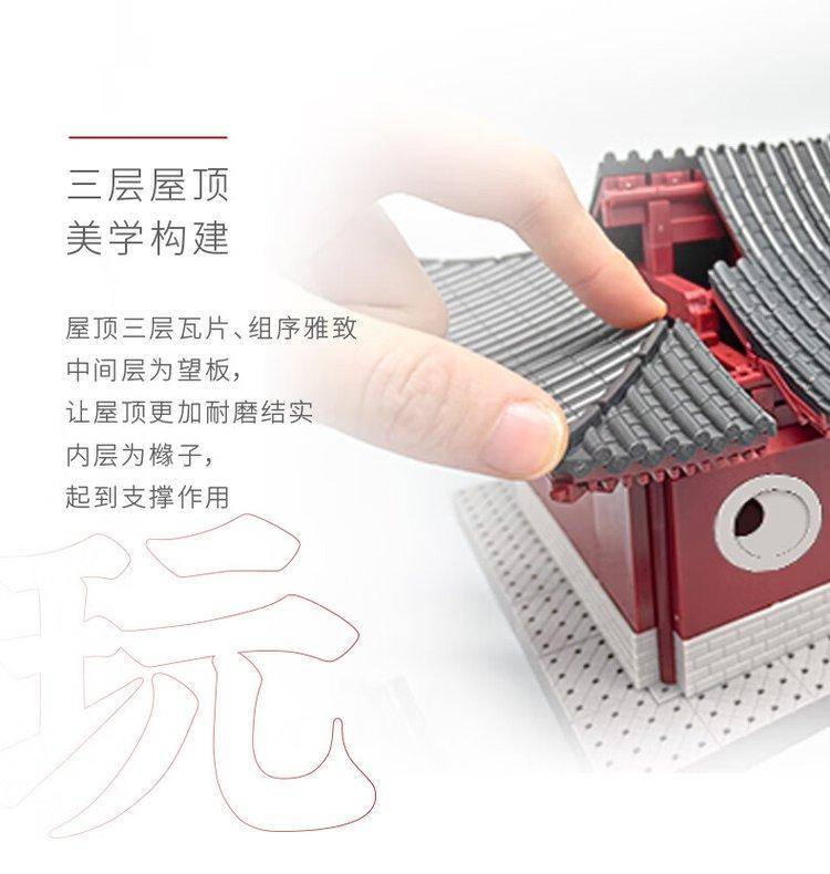 鱼跃龙门牌坊故宫榫卯积木玩具中国风古建筑潮玩礼物拼装模型diy